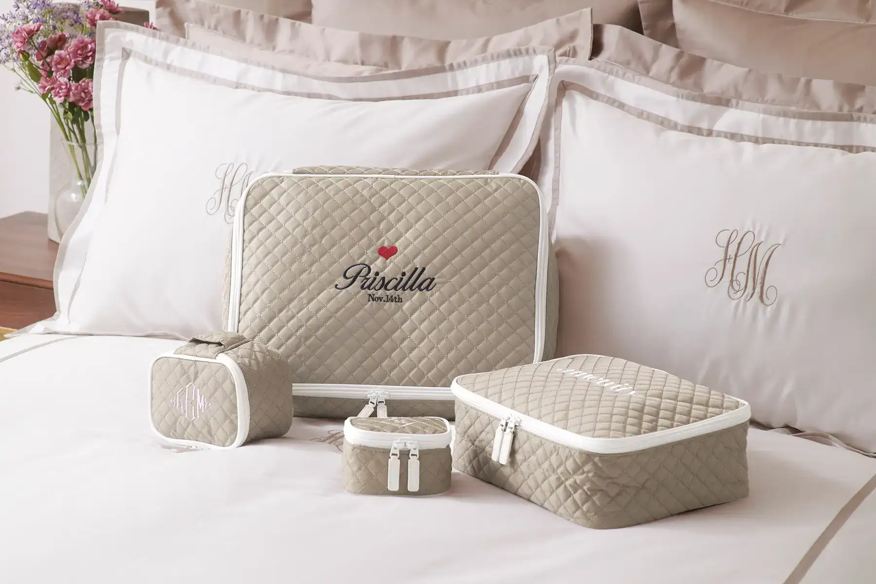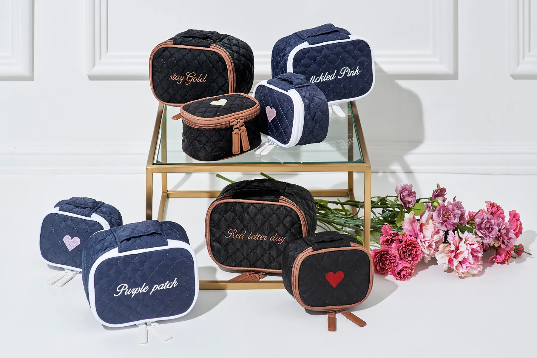これからのギフトシーズンに|大人気ダイヤモンドキルトポーチより刺繍入りポーチセットが登場